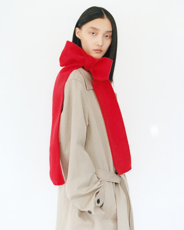 The Line in Poppy Red adds a vibrant touch to any ensemble. Crafted from luxurious Italian 100% cashmere fabric, this piece features signature overlock stitching, making it both stylish and elegant.